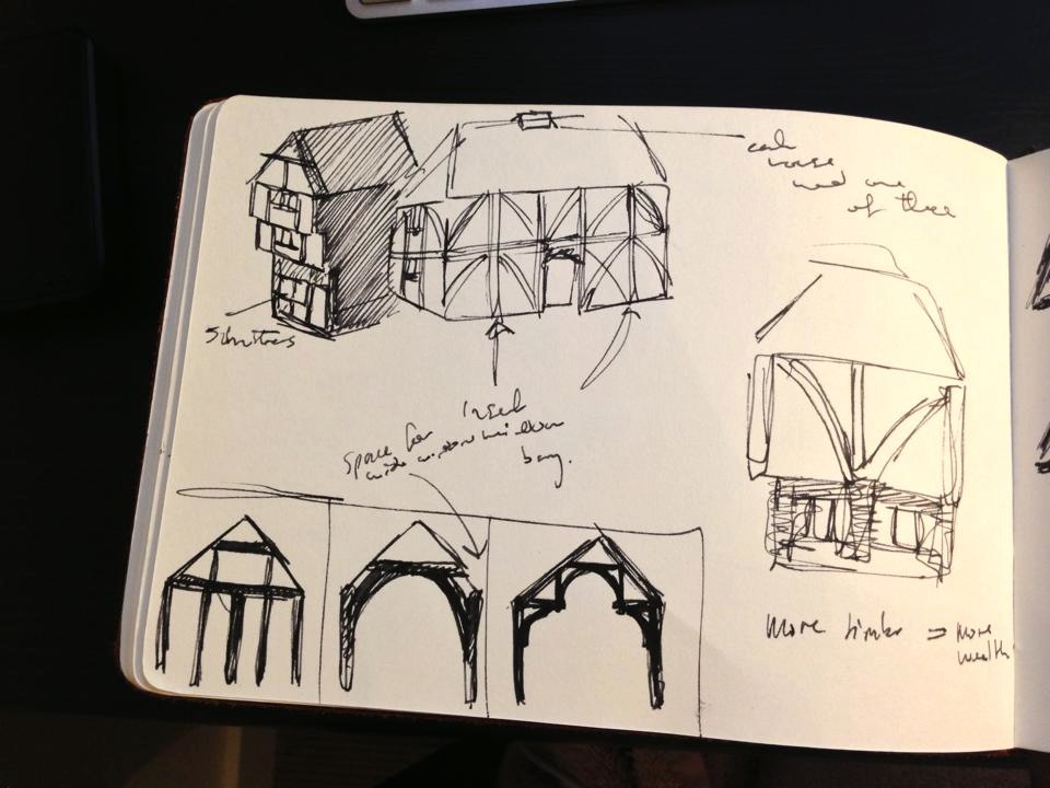 Just before I show you all of the sketches after I had researched in to wooden structures (Medieval and Tudor) I had attempted to create what I believed was an old wooden building, I'm very glad I bought those books...